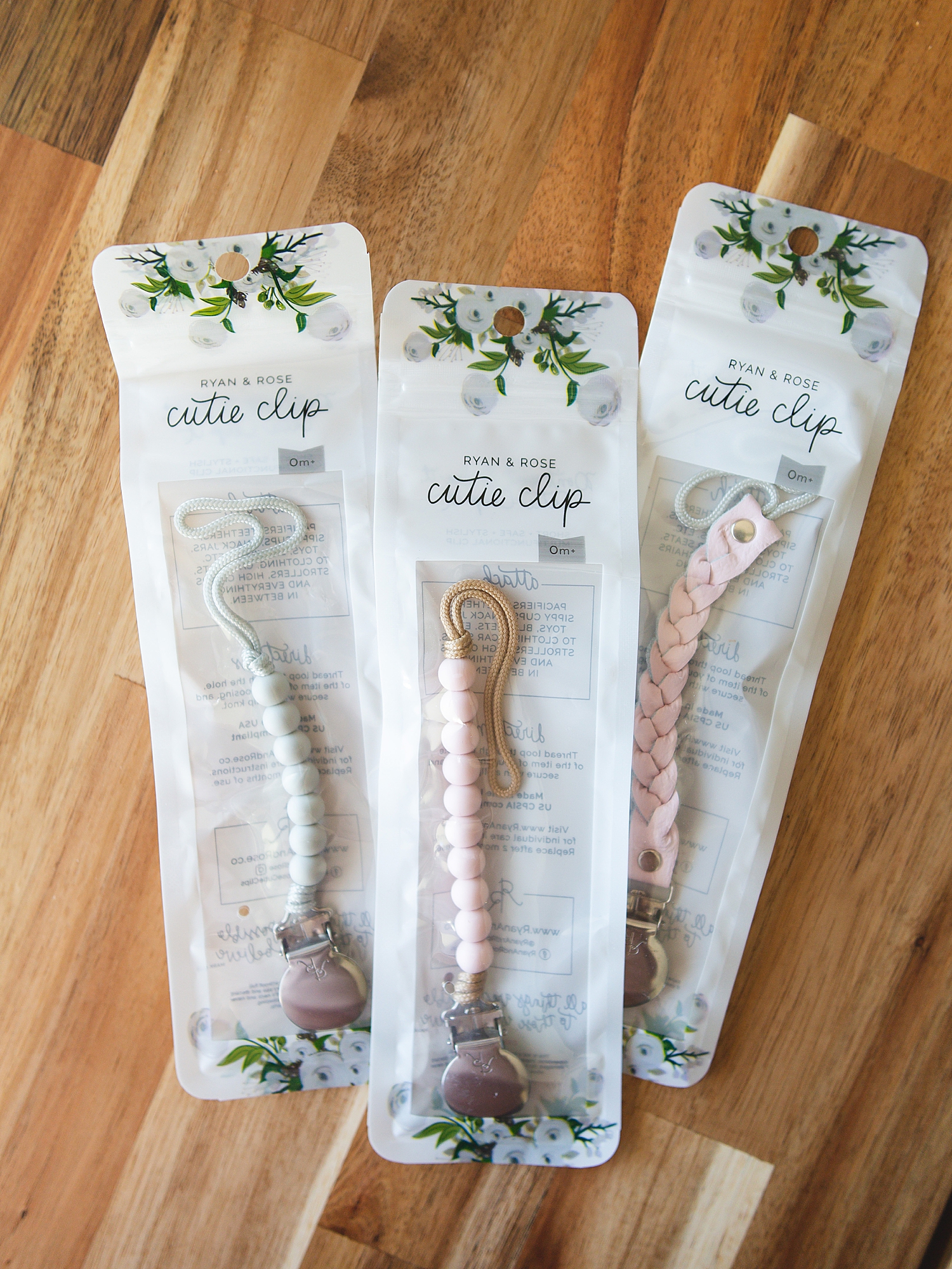 The folks at Ryan and Rose pay a lot of attention to detail, function, and baby safety, and one way I noticed that was in the way these clip on to baby’s clothes – you don’t have the “teeth” that typical clips do that can sometimes put small holes in clothes.