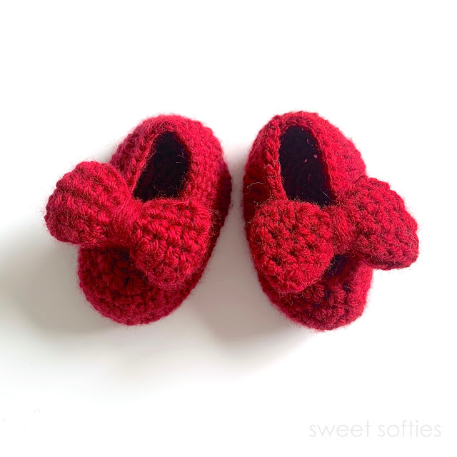 The shoe itself is crocheted in one piece with the bow being attached at the end. So cute!