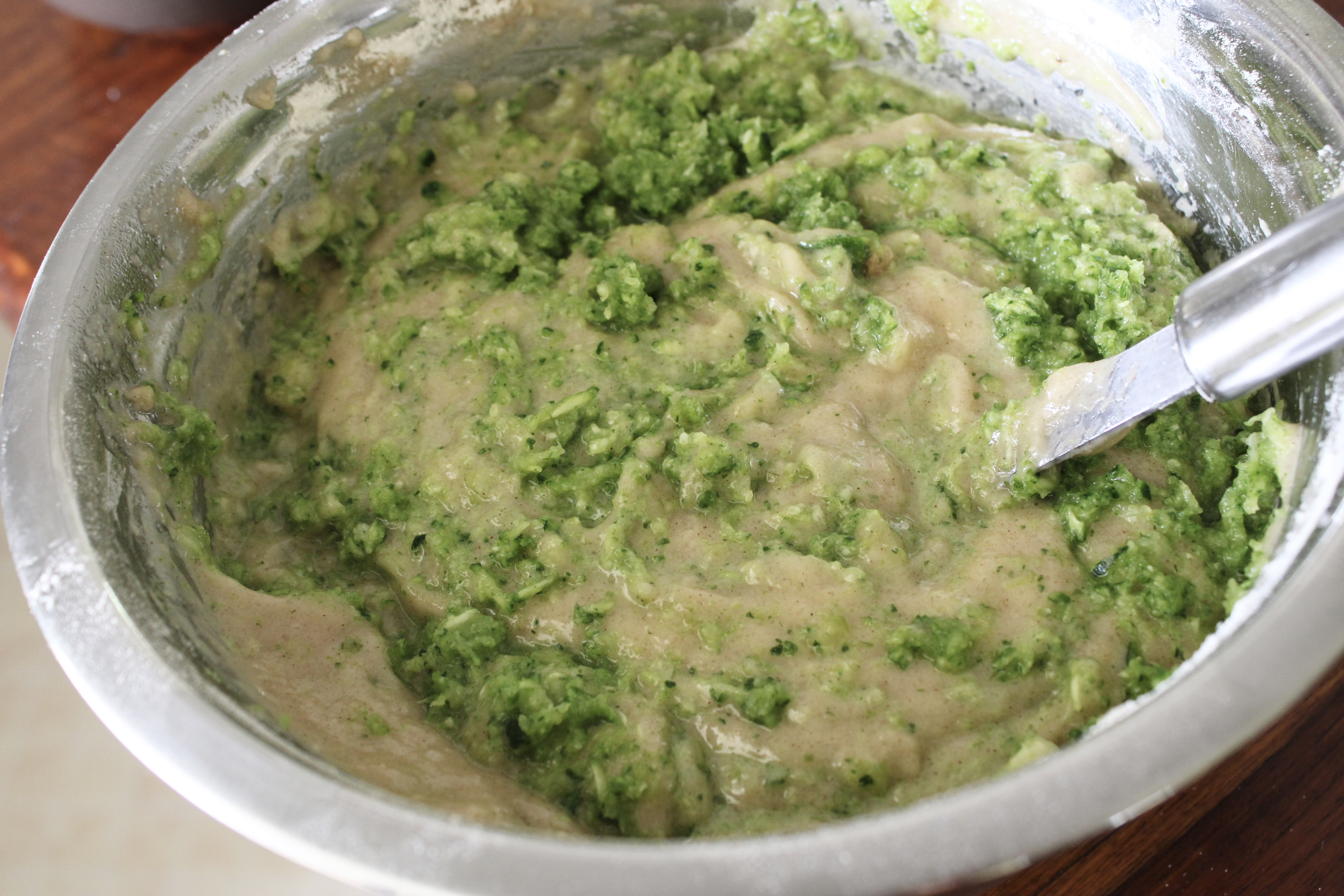 3. Add to flour mixture; stir just until moistened. Fold in shredded zucchini.