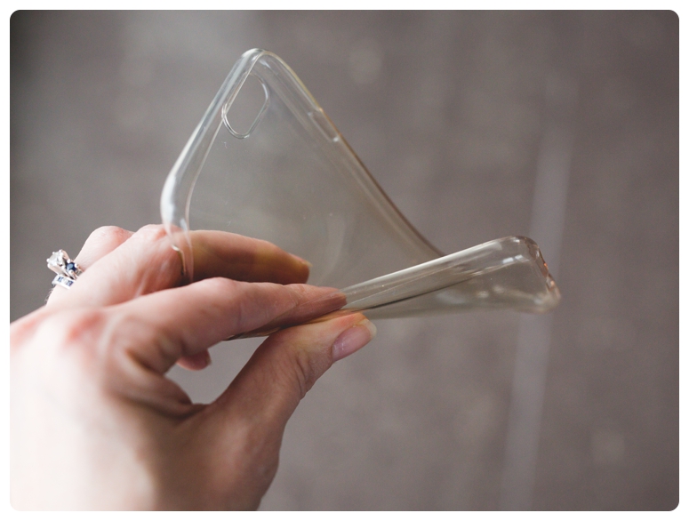 Here’s what I have had on my phone, just for protection….this simple, cheap, clear silicone case (which isn’t even that CLEAR anymore…but that’s a good excuse to do this again in another pattern). 🙂  It was 5 or 6 dollars, similar to this one on Amazon. It really was just to hold me over until I found the perfect iPhone case. You get it, right? 😛