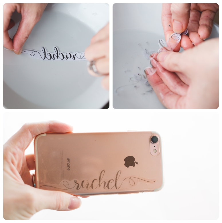 Then I just carefully put the sticker onto the inside of my iPhone case and stared in awe that I had just made my own name decal. Really? That easy?! I’m pretty sure I might go wild making stickers for everything around my house now…..
