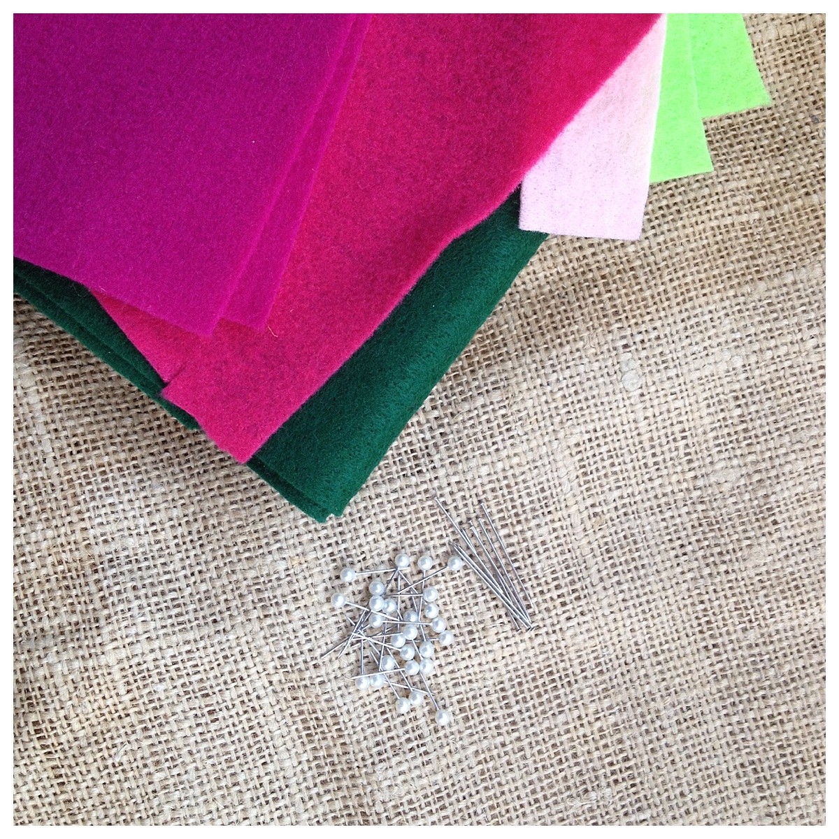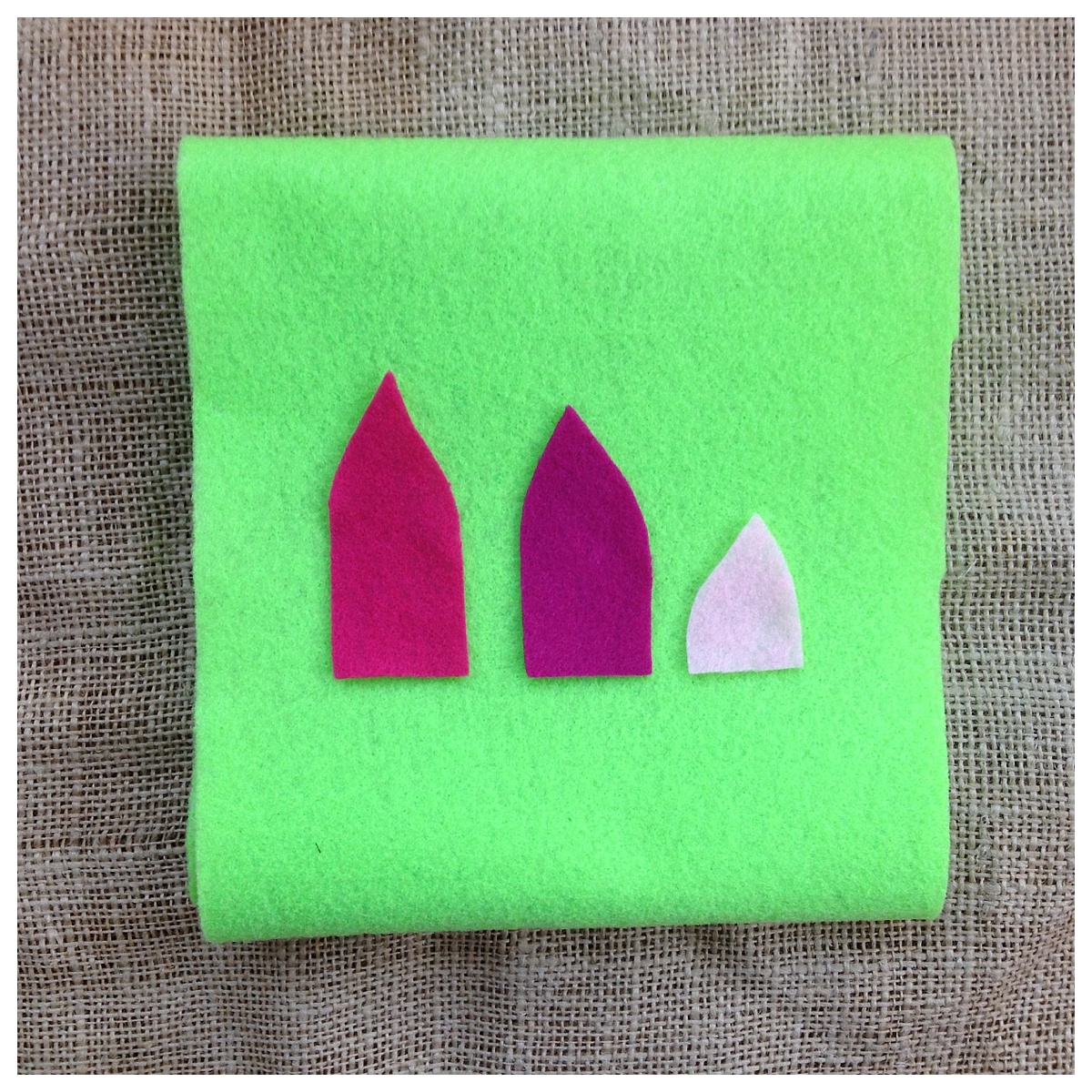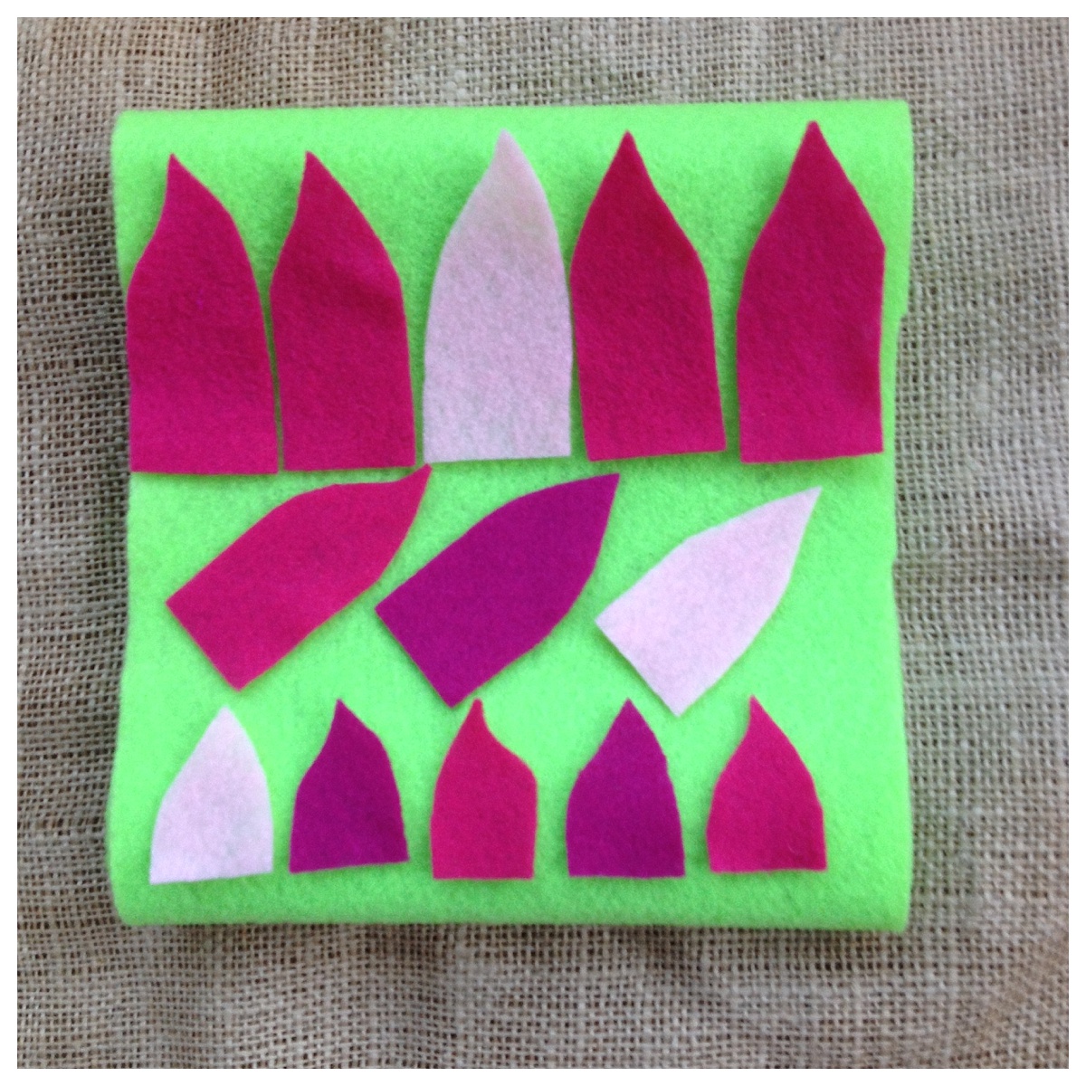 - felt – 3 shades of pink, 2 shades of green, and cream