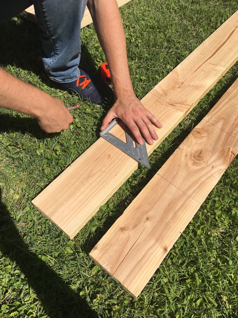 For these, you will need to cut 4 angled pieces (2 per side) from the 10-foot 2″ x 4″ board.