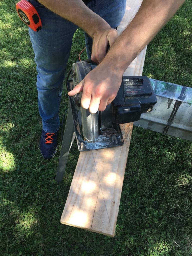 For these, you will need to cut 4 angled pieces (2 per side) from the 10-foot 2″ x 4″ board.