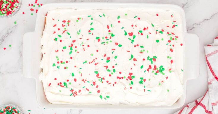 Christmas Poke Cake is a colorful holiday party in a pan that is quick and easy to make and always brings festive cheer to family and friends!