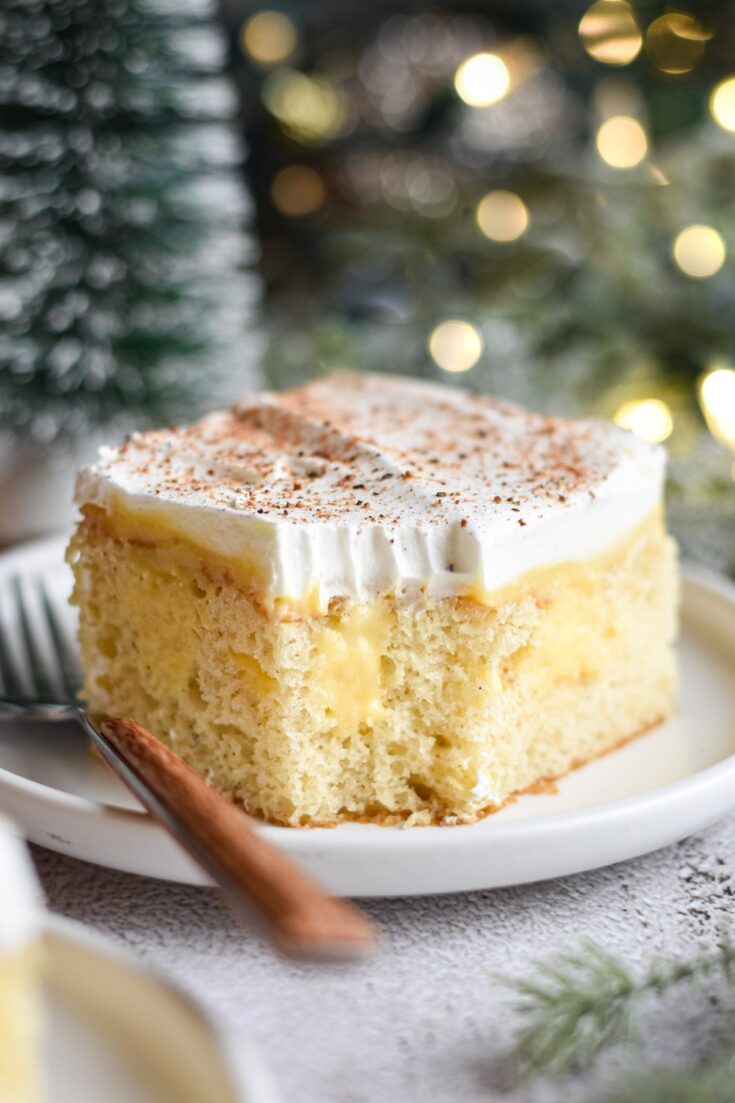 A boxed cake mix jump-starts this flavor-packed Eggnog Poke Cake recipe, making it a quick & easy dessert! If you’re looking for a festive dessert for the holiday season, this is the ONE!