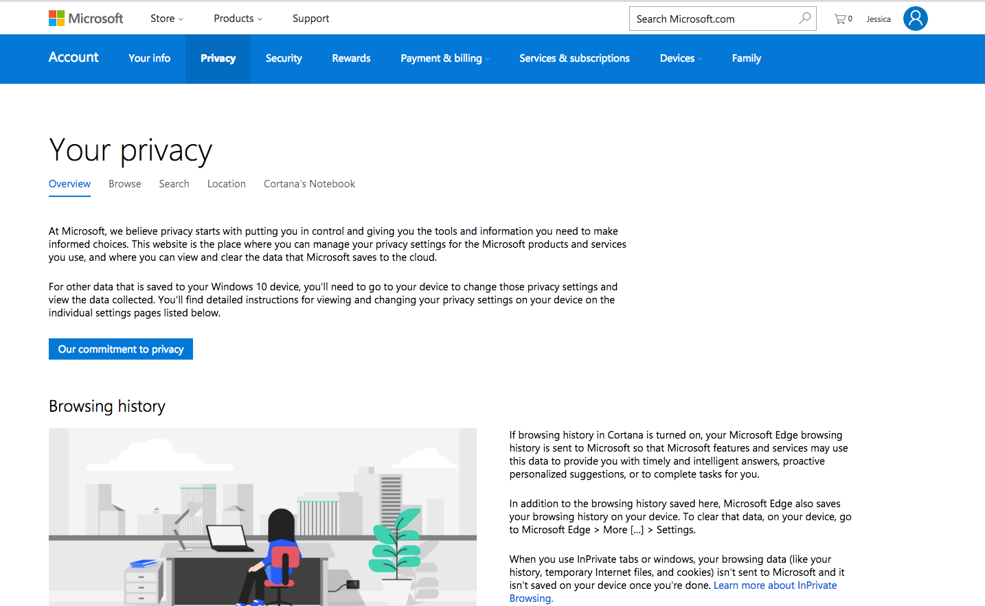 If you click on the red medal with the drop down menu like we talked about earlier, and then click on the words Microsoft Rewards, it’ll take you to your account dashboard. Here you can change your settings, view and change the privacy options, redeem rewards and much more.