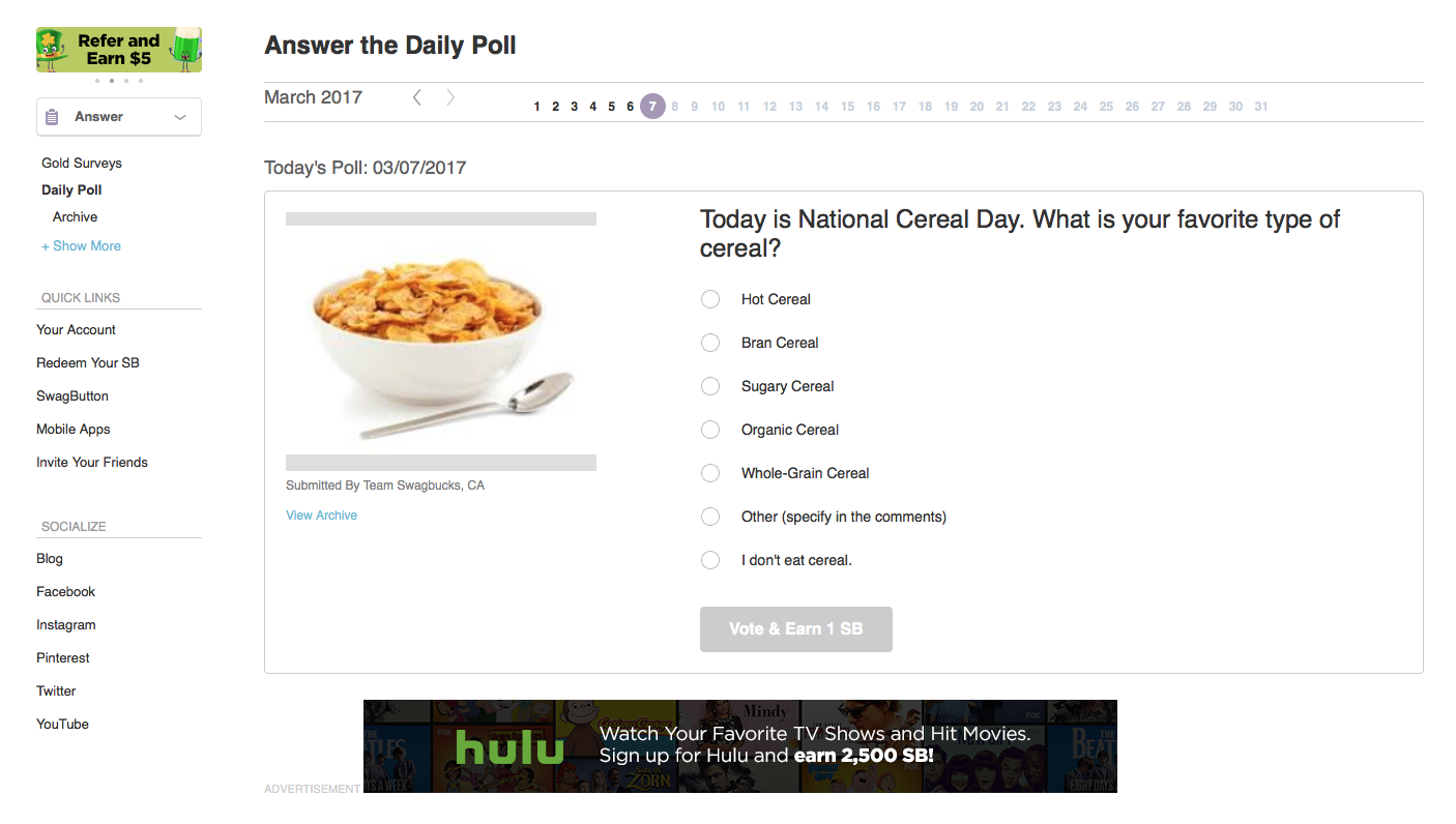I’m going to click on Daily Poll. Just choose your answer and you’ll be rewarded with 1 SB.
