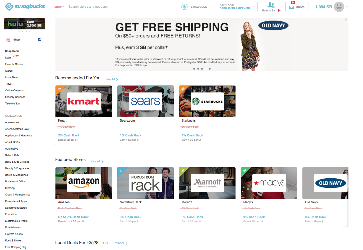 Honestly, I mostly just use Swagbucks for online shopping. If there’s something you know you’re going to purchase online, BEFORE you just go and order it, go to Swagbucks first!