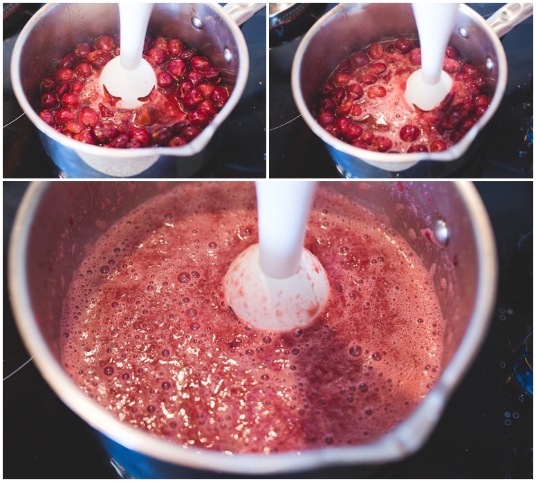 Blend your cherry compote: when your cherry compote is cool enough, take a stick mixer if you have one (if not, use your blender
