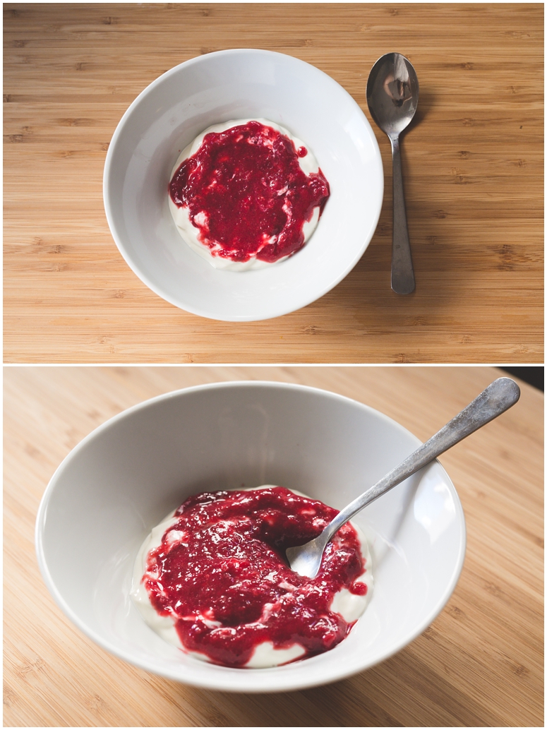 A great way to use cherry compote is to put it on plain Greek yogurt — you’re sweetening it with fresh fruit, but without all the sugar that the store-bought ones have in them! Delicious!