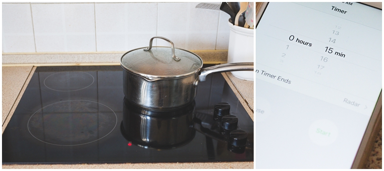 4. When the water starts to boil, remove the pan from the heat, cover it, and leave it for 15 minutes.