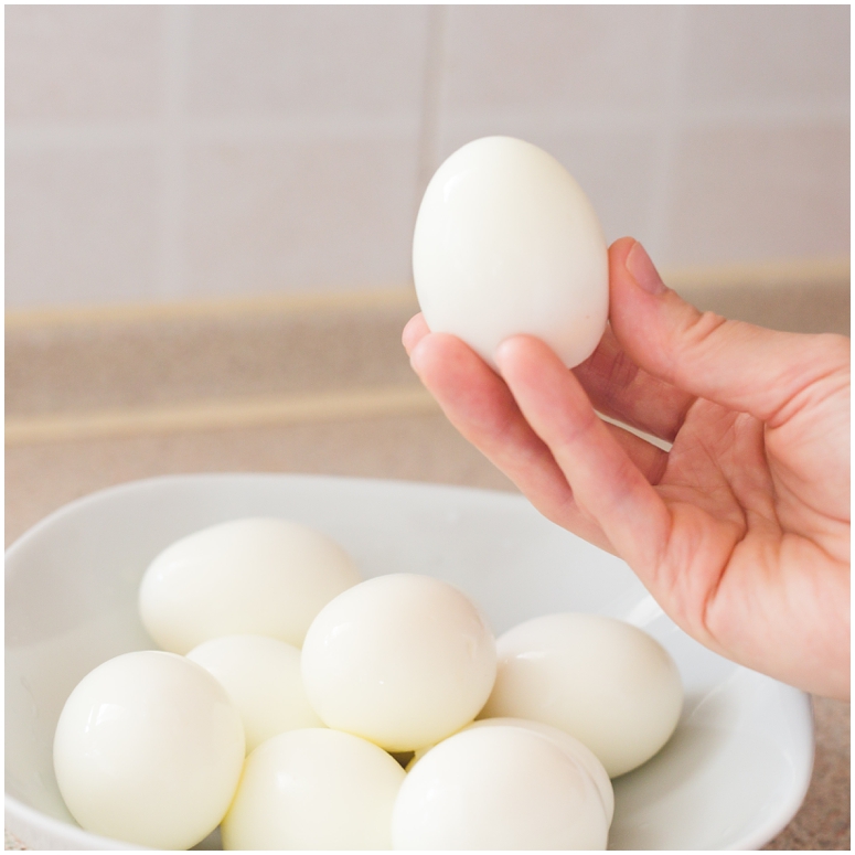 Have you ever found yourself in a situation where you needed your hard-boiled eggs to look PERFECT – maybe you’re making them to cut in half for deviled eggs, or maybe you’re serving them whole when friends come over? I used to nervously hope that the peel would slide off easily, but it was a guessing game! Until now. Now I KNOW how to make perfect hard-boiled eggs every. single. time. I’ve been testing this for the past couple of months. My kids love to eat hard-boiled eggs for lunch or snacks, so I make them at least once a week. So let’s just say that I’ve cooked them with a lot of different variables until I figured out the one common denominator.