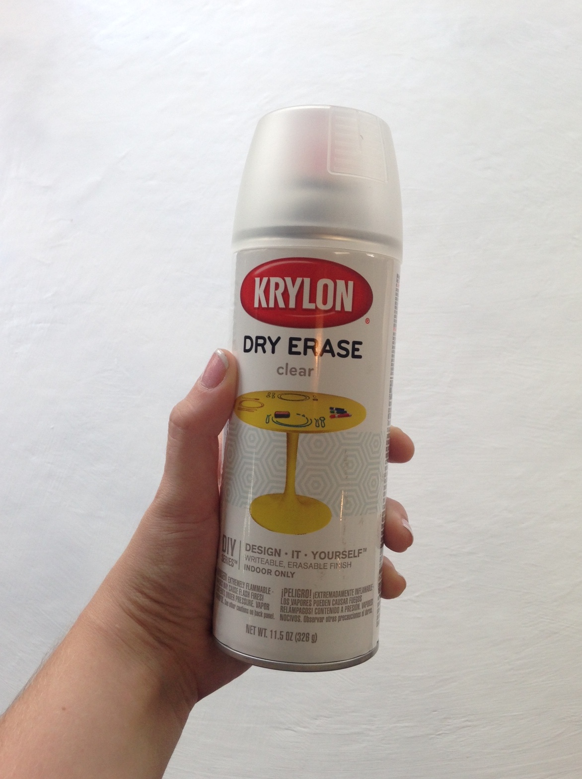 A few months ago, I found this Krylon Dry Erase Clear Spray at JoAnn’s for $2.97! I knew I had to get it . . . I wasn’t sure what to do with it, but it was too good of a deal to pass up 🙂