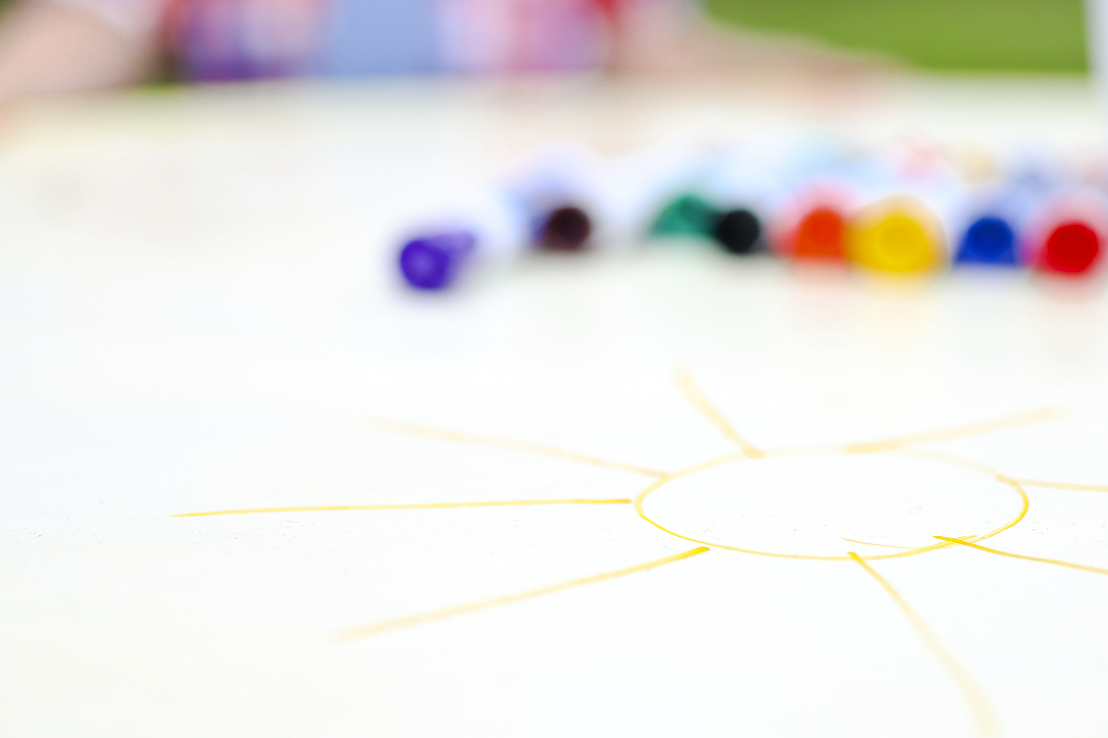Then, a few weeks ago, my sisters and I were walking around our neighborhood one evening and I saw this outdoor, clear glass table on the curb. As soon as I saw it, I knew – that’s what I have to use my dry erase spray for!! It had one leg that had rusted out so it wasn’t sitting flat on the ground. After I got it home (with my Dad’s help and my brother’s truck 🙂 ), Dad sawed off the legs a few inches so it would sit flat on the ground – it ended up the cutest little height 🙂 Perfect for little people to color on!