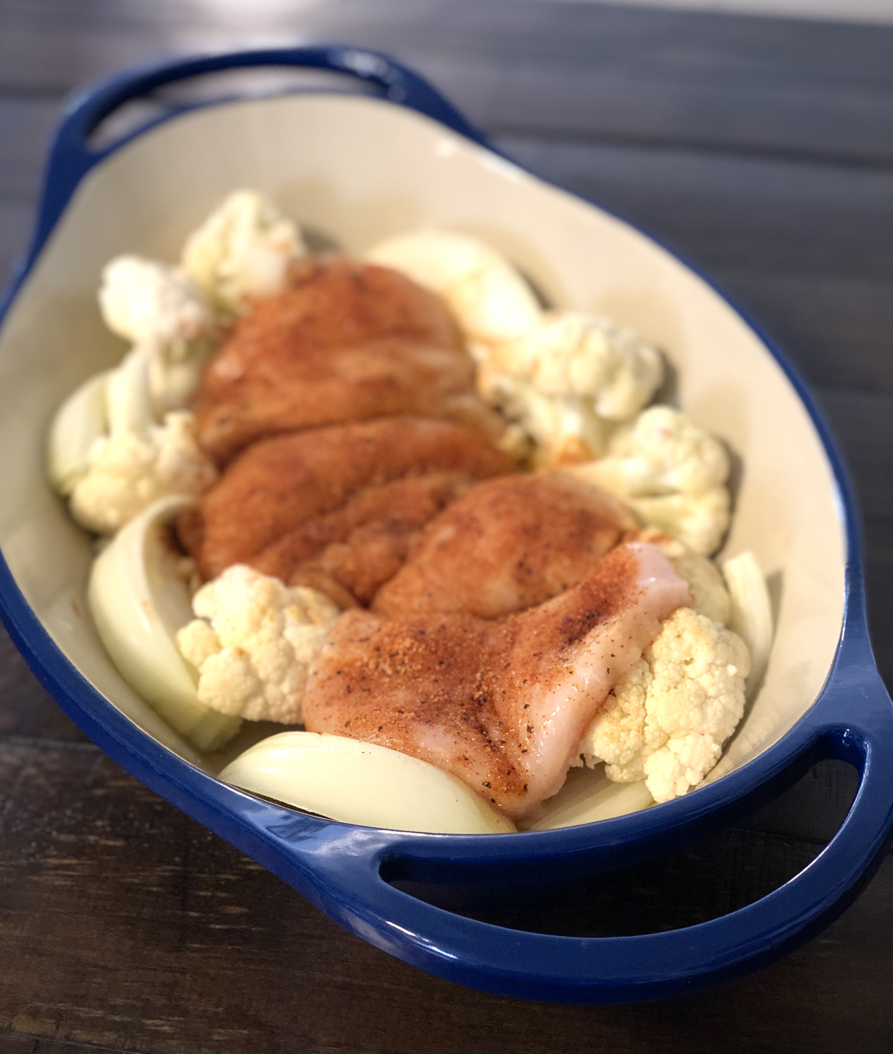 The seasoning on this chicken is so amazing – it almost has a curry taste but it’s not too strong of a taste, which I loved. The chicken had such warm and comforting flavors and the spices tasted so good on the cauliflower too! My husband was so impressed with the flavors in this dish.