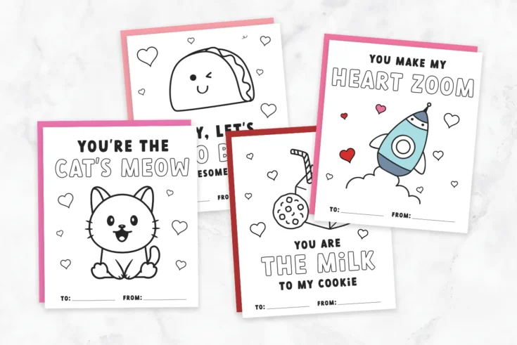 In short, free printable Valentine’s Day cards are a great way to save time, reduce stress, and still create cute valentines your child will be proud to hand out. With so many different designs, easy digital downloads, and options that work for any age group, you can find the perfect card for your child’s classroom without spending more than a few minutes printing and assembling. Whether you choose a simple coloring card, a fun pun card paired with a small treat, or a creative non-candy option, printable valentines make February 14th easy, affordable, and so much fun.