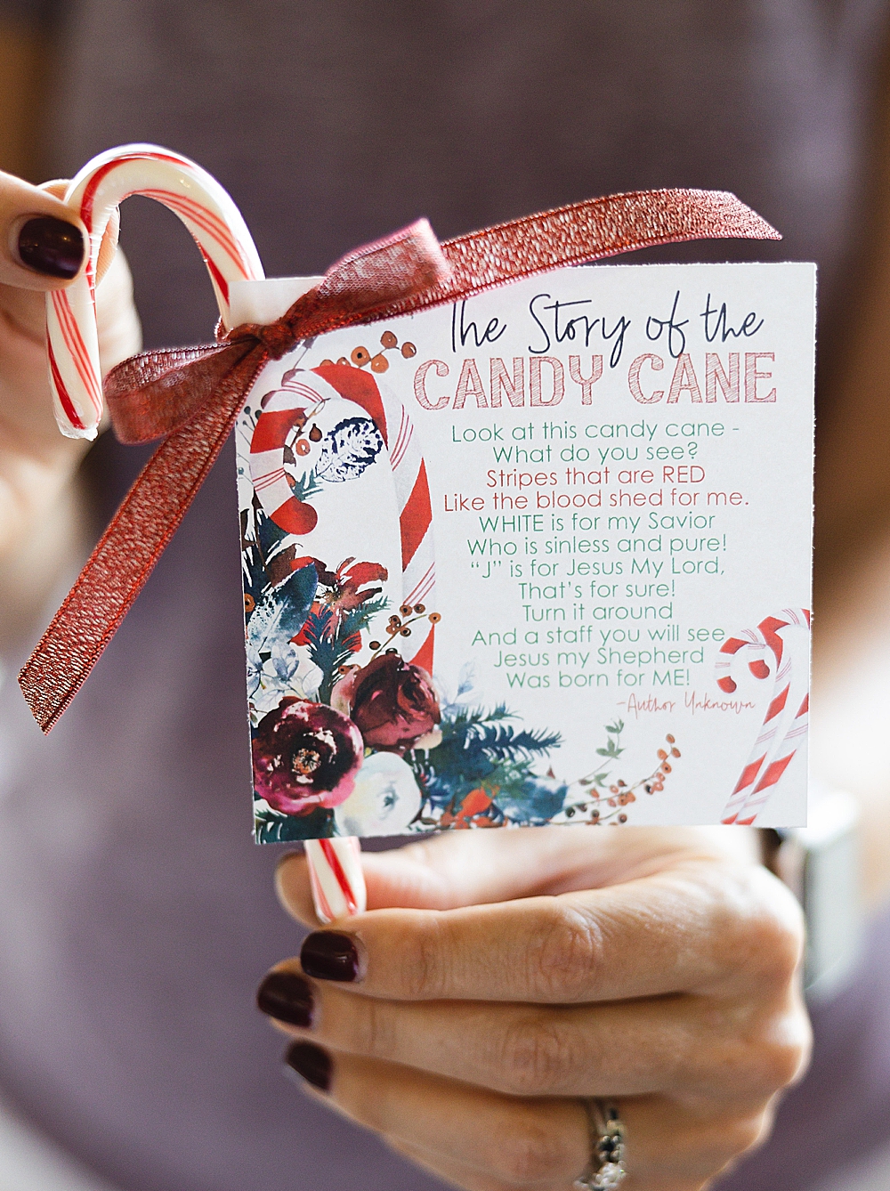 Our design not only works for kids, but it’s also pretty enough (with its classy floral design) to use for adults – attach the free printable candy cane poem to a simple candy cane and it’s suddenly dressed up enough to leave as a special treat on a friend’s Christmas tree as a reminder of our Good Shepherd!